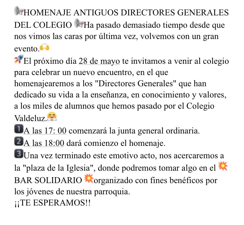 Actividades Homenaje antiguos directores generales del colegio – Sábado 28 de mayo Por ricardo78blog en 3 03+01:00 mayo 03+01:00 2022 • ( Deja un comentario ) Compartir: Haz clic para enviar un enlace por correo electrónico a un amigo (Se abre en una ventana nueva) Correo electrónico Haz clic para imprimir (Se abre en una ventana nueva) Imprimir Haz clic para compartir en WhatsApp (Se abre en una ventana nueva) WhatsApp Haz clic para compartir en X (Se abre en una ventana nueva) X Me gusta Cargando... Relacionado Categorías:Actividades, Actividades culturales, APA, Fiestas, Noticias