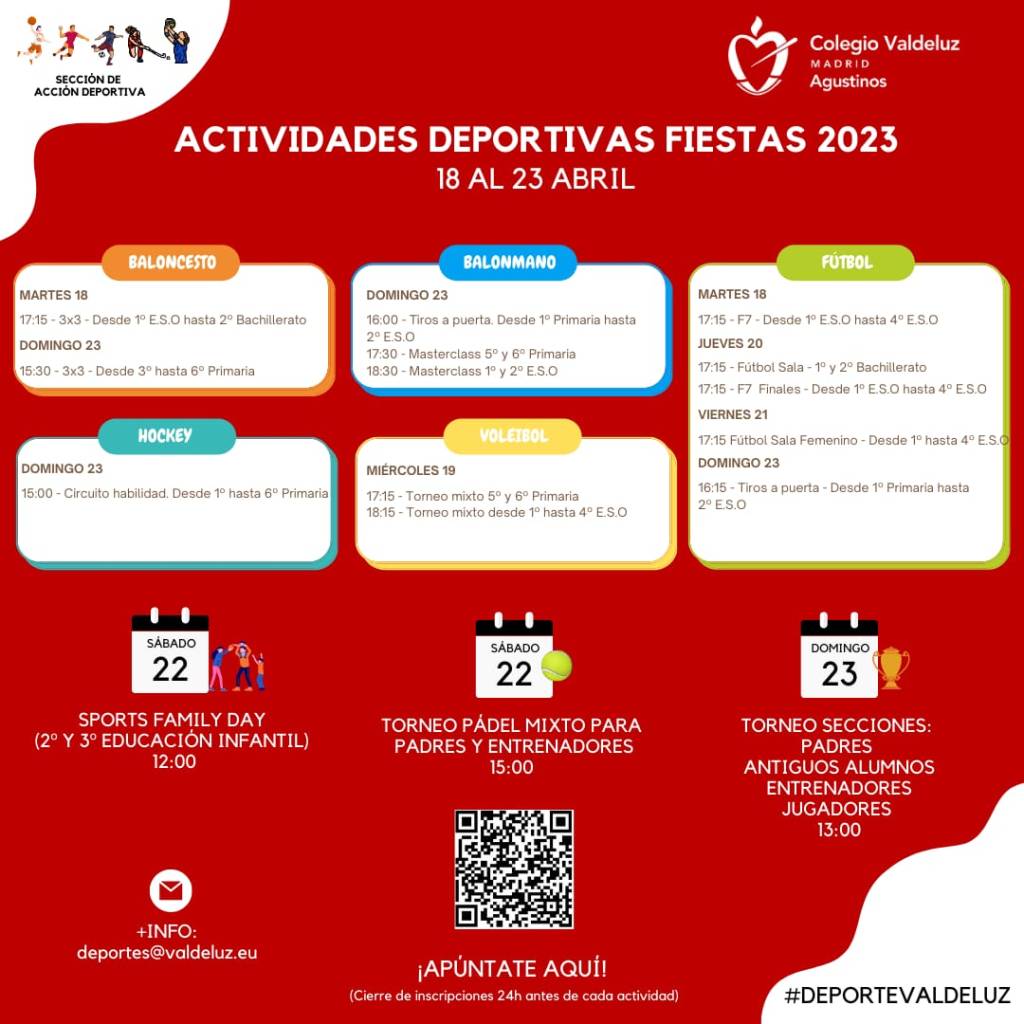 Actividades culturales Actividades Deportivas Fiestas 2023 18 al 23 de abril Por ricardo78blog en 11 11+01:00 abril 11+01:00 2023 • ( Deja un comentario ) Compartir: Haz clic para enviar un enlace por correo electrónico a un amigo (Se abre en una ventana nueva) Correo electrónico Haz clic para imprimir (Se abre en una ventana nueva) Imprimir Haz clic para compartir en WhatsApp (Se abre en una ventana nueva) WhatsApp Haz clic para compartir en X (Se abre en una ventana nueva) X Me gusta Cargando... Relacionado Categorías:Actividades culturales, Deportes, Fiestas