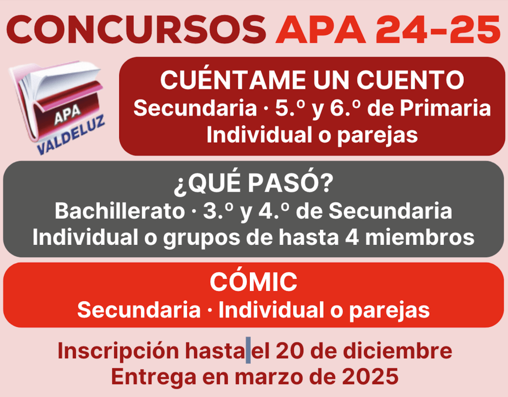 ¡Estad atentos porque seguiremos informando! Si tenéis alguna pregunta, no dudéis en escribir a: apa-concursos@valdeluz.eu