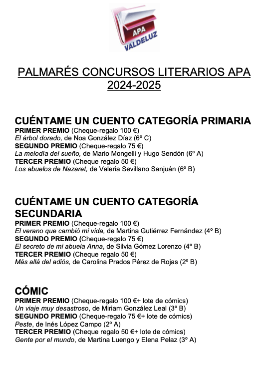 Y un agradecimiento final al colegio y a los profes que tanto nos ayudan a poner en marcha estos concursos.